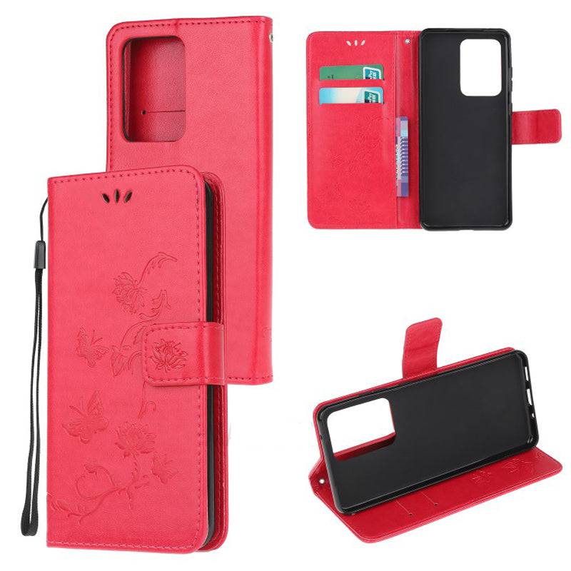 Imprint Butterfly Flower Leather Mobile Phone Case for Samsung S21 Series