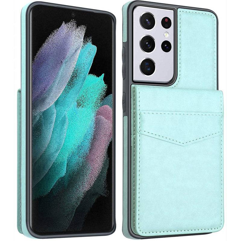 Étui portefeuille en cuir léger double couche pour Samsung Galaxy S21 Ultra