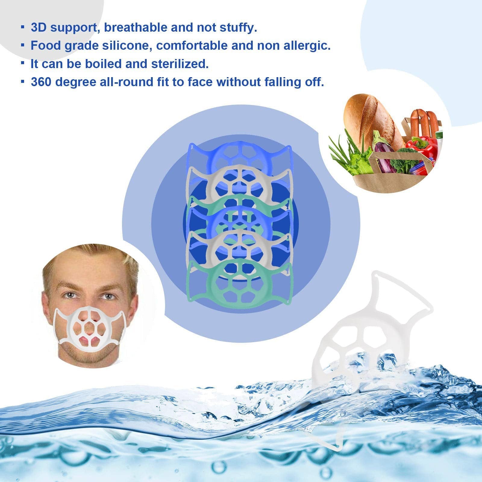 - High-quality Material: Face frame support bracket made of food-grade silicone material, soft, smooth and comfortable, washable, and reusable.