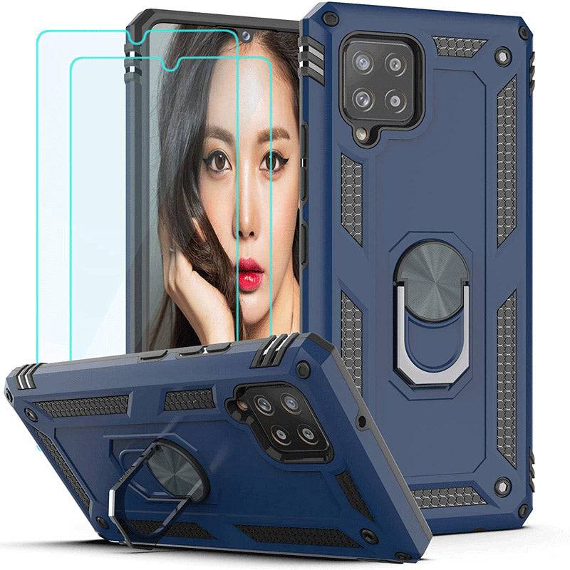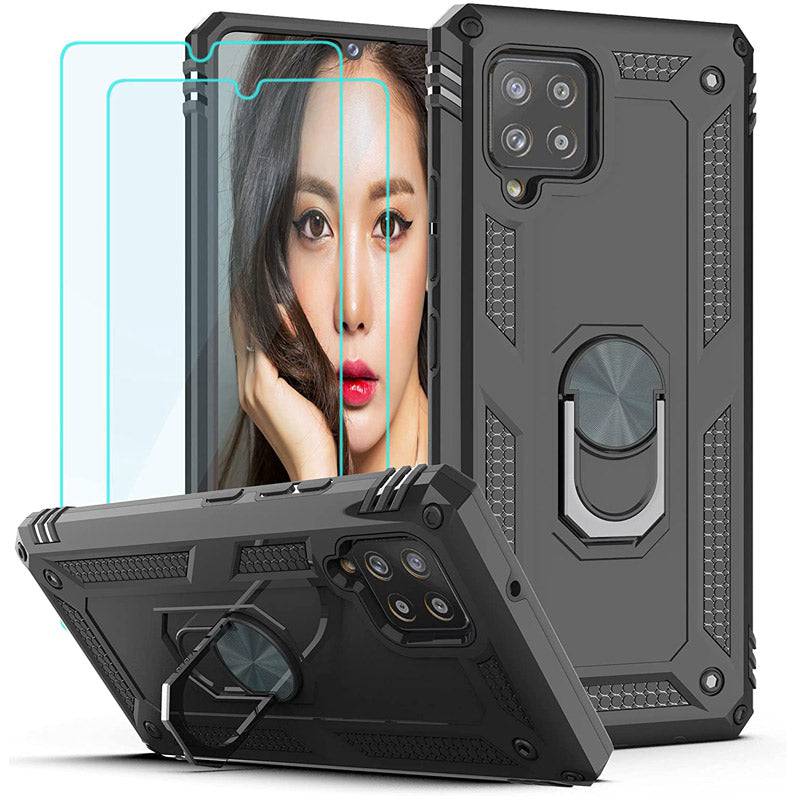 Samsung A42(5G) Luxury Armor Ring Bracket Phone Case With 2-Pack Tempered Glass Screen Protectors