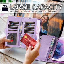 ▶[LARGE CAPABILITY+WRIST STRIP]:Inside features 9 card slots,1 zipper coin pocket, 2 side pockets conveniently store your ID, license,photo,cash and credit cards.Detachable LEATHER HAND STRAP to allow for easy fastening and access to your Phone without hassle.