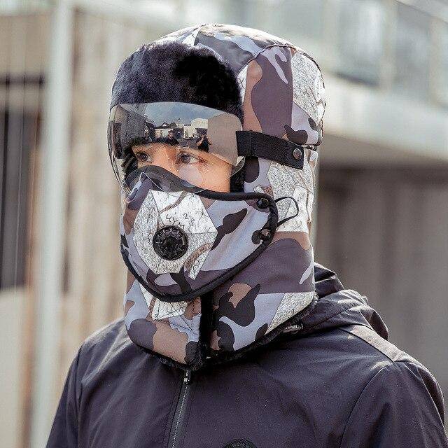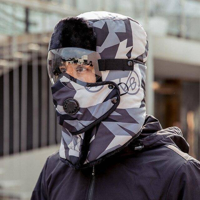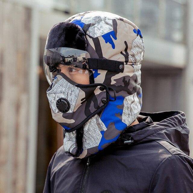 Unisex Winter Warm Hat with Windproof Facemask and Windproof Glasses